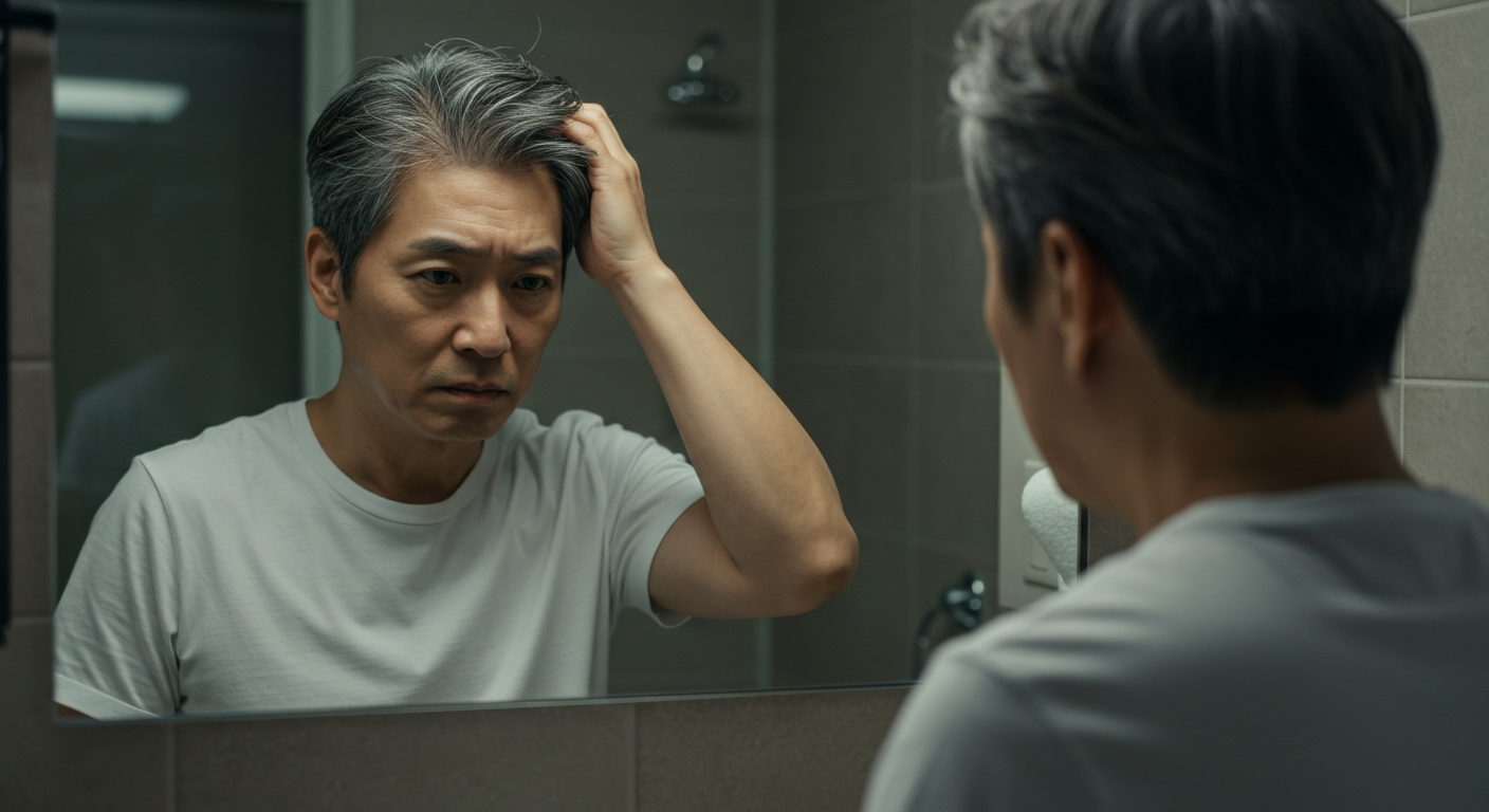 나이가 들수록 모근의 멜라노사이트 세포가 점점 줄어들거나 기능이 약해집니다. 특히 40~50대가 되면 이런 변화가 뚜렷하게 나타나, 흰머리가 눈에 잘 띄게 됩니다. 이것은 우리의 몸이 자연스럽게 늙어가는 과정 중 하나예요.